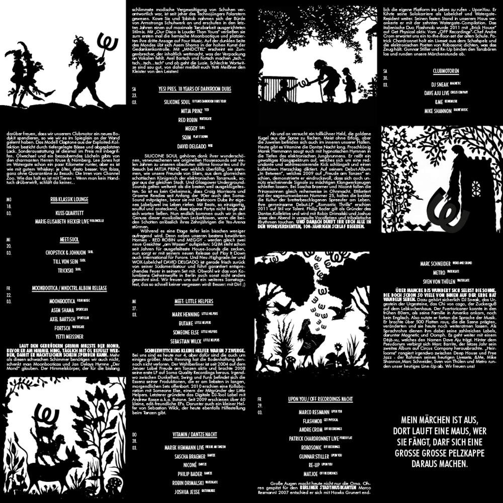 Monthly Flyers, each month features a different artist.